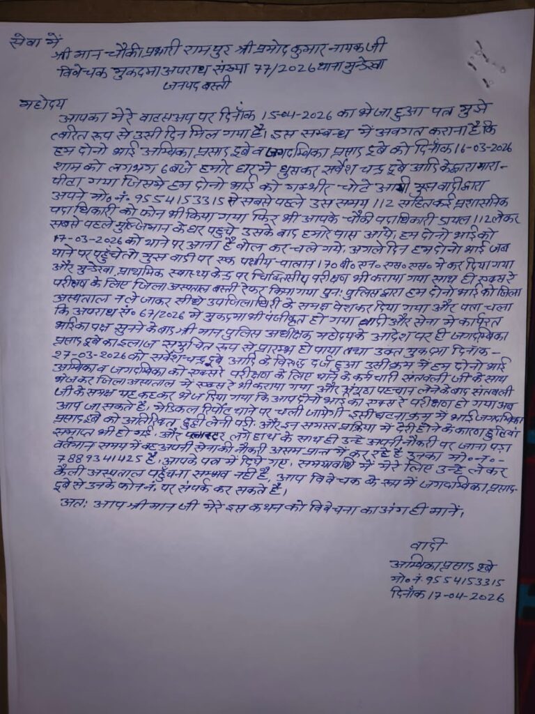 जनपद बस्ती के मुंडरवा थाना क्षेत्र अंतर्गत रामपुर चौकी का एक मामला अब तूल पकड़ता जा रहा है, जहां देश की सेवा में तैनात एक सैनिक और अधिवक्ता परिवार पर जानलेवा हमला किए जाने का आरोप है। हैरानी की बात यह है कि पीड़ित पक्ष पर ही पुलिस ने कार्रवाई कर दी, जिसके बाद अब विवेचक पर मुकदमे को प्रभावित करने के गंभीर आरोप लगे हैं। इस पूरे घटनाक्रम ने पुलिस की निष्पक्षता पर बड़े सवाल खड़े कर दिए हैं।